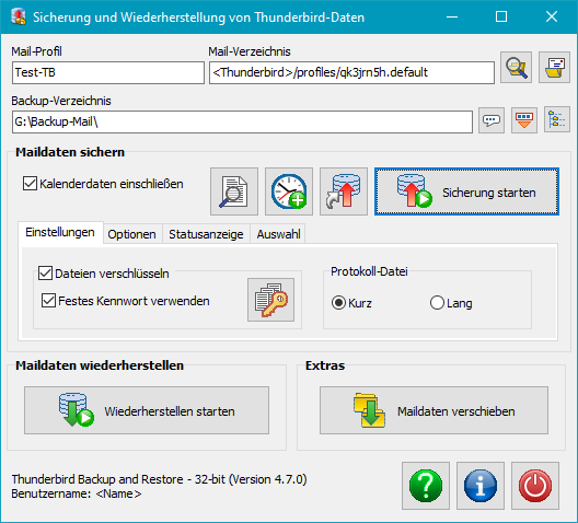 Am einfachsten ist es, wenn die Maildaten, wie oben beschrieben, zuvor mit TbBackup